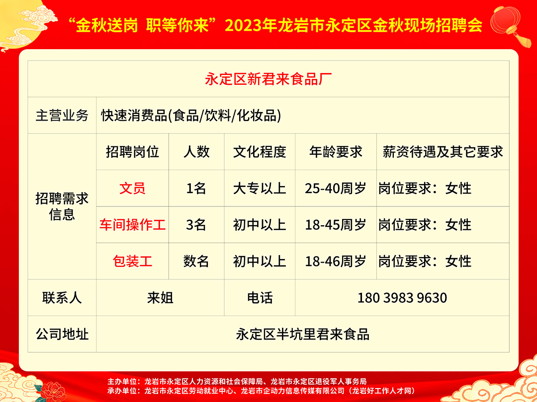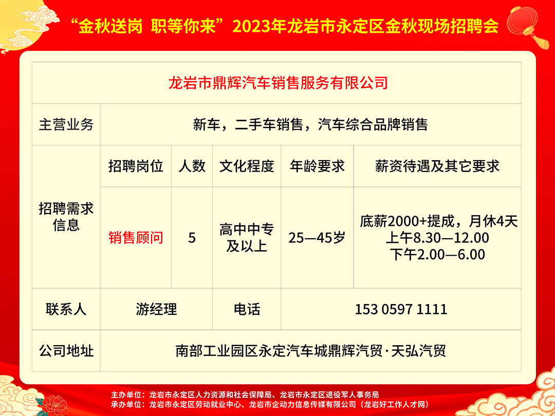 承辦單位: 龍巖市永定區(qū)勞動就業(yè)中心 龍巖市企動力信息傳媒有限公司