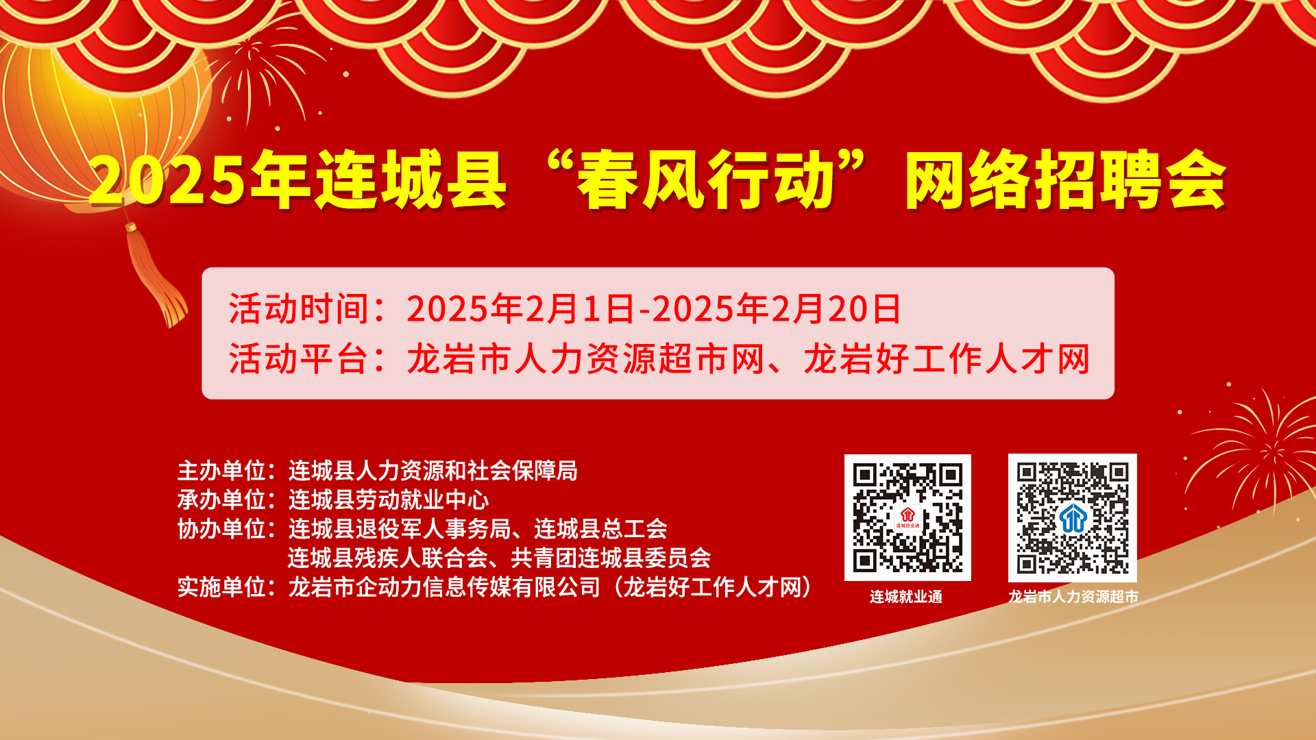 協(xié)辦單位: 連城縣退役軍人事務(wù)局、連城縣總工會(huì)、連城縣殘疾人聯(lián)合會(huì)、共青團(tuán)連城縣委員會(huì) 實(shí)施單位:龍巖市企動(dòng)力信息傳媒有限公司(龍巖好工作人才網(wǎng))