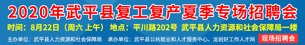 一、招聘會主題:2020年武平縣復(fù)工復(fù)產(chǎn)夏季專場招聘會