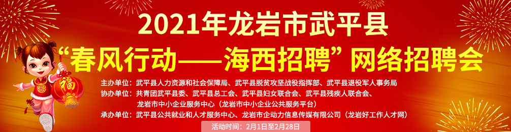 承辦單位: 武平縣公共就業(yè)和人才服務(wù)中心、龍巖市企動(dòng)力信息傳媒有限公司(龍巖好工作人才網(wǎng))