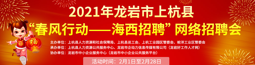 承辦單位: 上杭縣人力資源公共服務中心、龍巖市企動力信息傳媒有限公司(龍巖好工作人才網(wǎng))