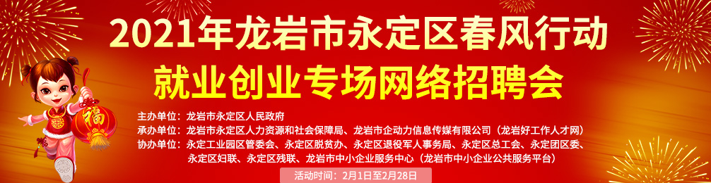 2021年龍巖市永定區(qū)“春風(fēng)行動”就業(yè)創(chuàng)業(yè)專場網(wǎng)絡(luò)招聘會