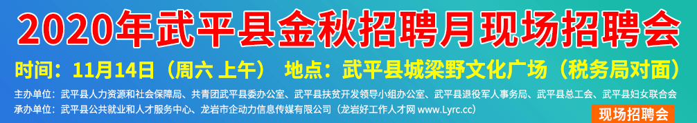 舉辦單位:武平縣人力資源和社會保障局 承辦單位:武平縣公共就業(yè)和人才服務(wù)中心、龍巖市企動力信息傳媒有限公司(龍巖好工作人才網(wǎng) m.jinhangda.com.cn)