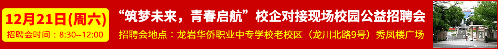 舉辦單位:龍巖市新羅區(qū)人力資源和社會(huì)保障局 協(xié)辦單位:企動(dòng)力好工作人才網(wǎng)(m.jinhangda.com.cn)