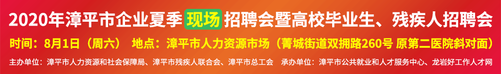 舉辦單位:漳平市人力資源和社會(huì)保障局、漳平市殘疾人聯(lián)合會(huì)、漳平市總工會(huì) 承辦單位:漳平市公共就業(yè)和人才服務(wù)中心、龍巖市企動(dòng)力信息傳媒有限公司