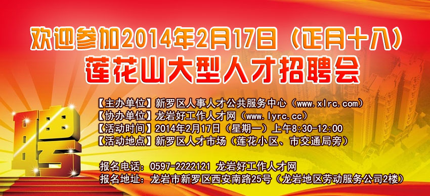 舉辦單位:新羅區(qū)人事人才公共服務(wù)中心 承辦單位:龍巖好工作人才網(wǎng)