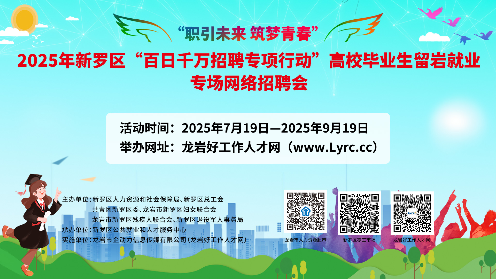 舉辦單位:新羅區(qū)人力資源和社會保障局 新羅區(qū)總工會 共青團新羅區(qū)委 龍巖市新羅區(qū)婦女聯(lián)合會 龍巖市新羅區(qū)殘疾人聯(lián)合會 新羅區(qū)退役軍人事務(wù)局