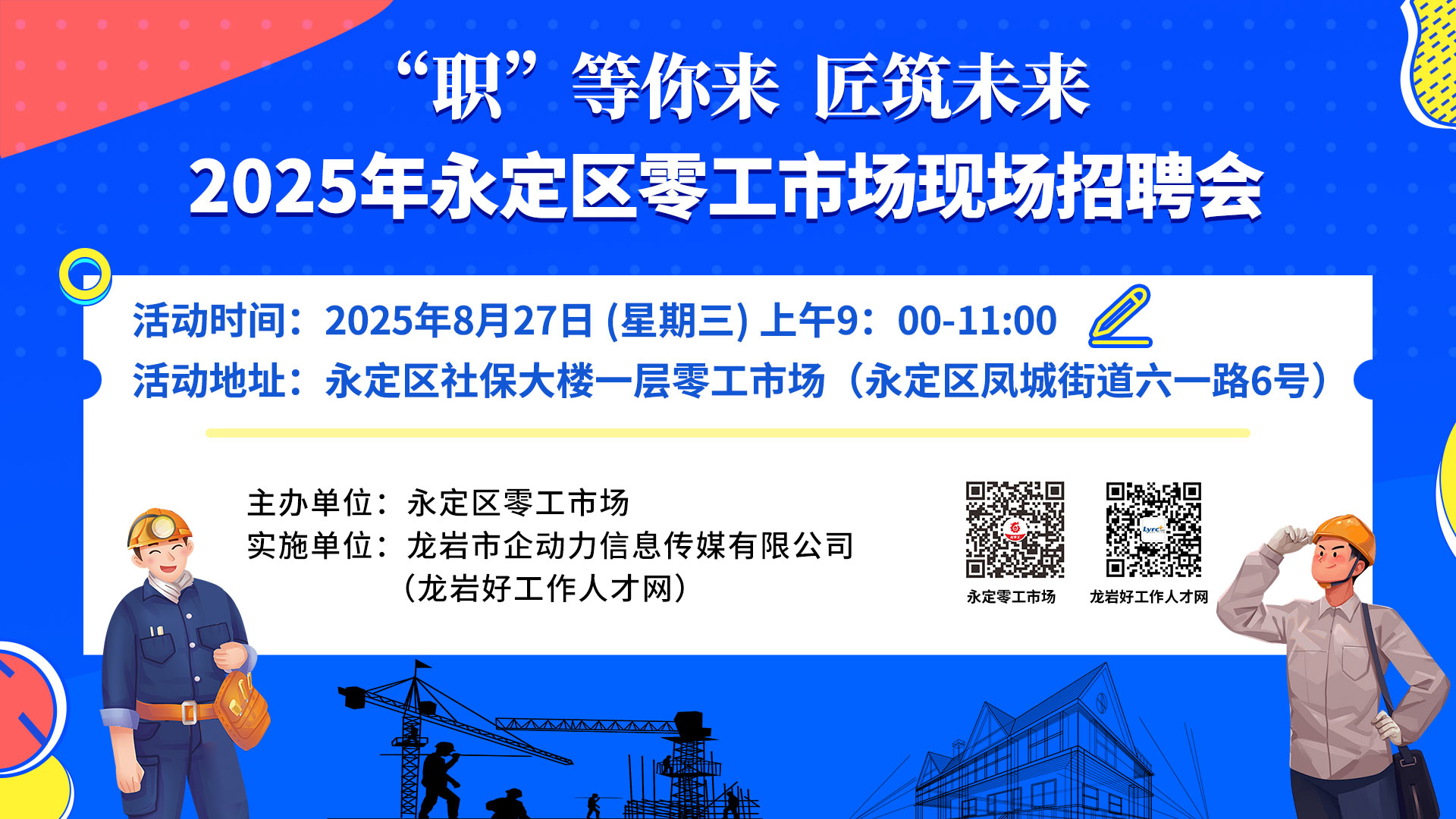 舉辦地點:永定區(qū)社保大樓一層零工市場(永定區(qū)鳳城街道六一路6號)