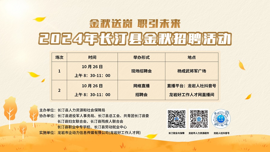 舉辦單位:長汀縣人力資源和社會保障局