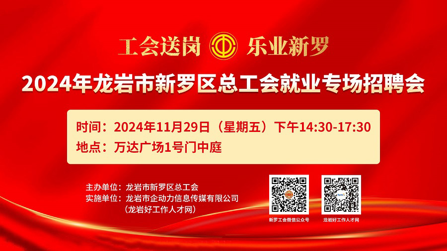 舉辦地點:新羅區(qū)人力資源市場(龍川西路32號)