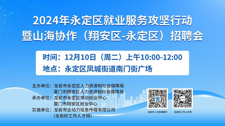 舉辦單位:龍巖市永定區(qū)人力資源和社會保障局 廈門市翔安區(qū)人力資源和社會保障局