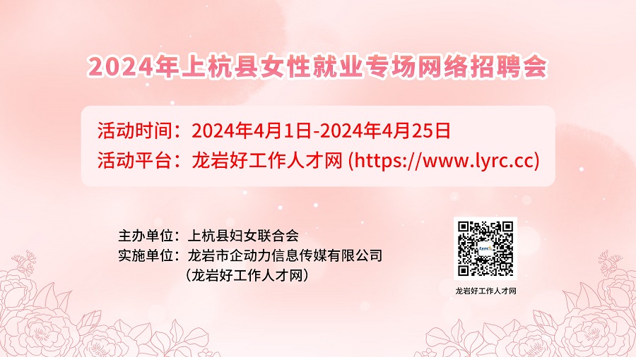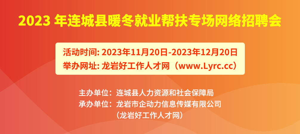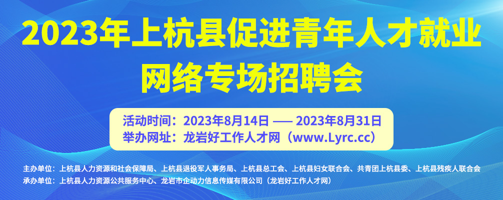 舉辦地點(diǎn):龍巖市人力資源超市 上杭縣智慧就業(yè)平臺(tái) 龍巖好工作人才網(wǎng)
