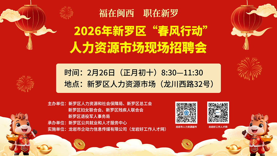 舉辦單位:新羅區(qū)人力資源和社會(huì)保障局、新羅區(qū)總工會(huì)、新羅區(qū)婦女聯(lián)合會(huì)、新羅區(qū)殘疾人聯(lián)合會(huì)、新羅區(qū)退役軍人事務(wù)局