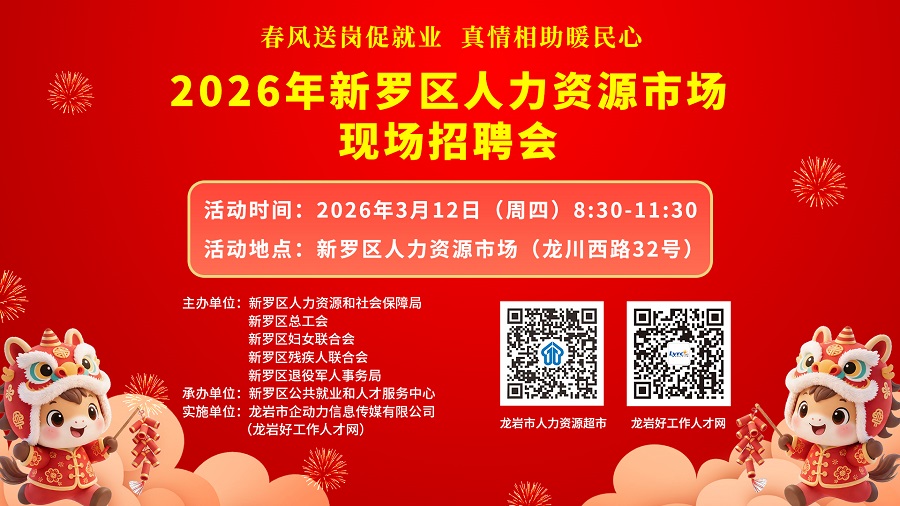 舉辦地點(diǎn):新羅區(qū)人力資源市場(chǎng)(龍川西路32號(hào))