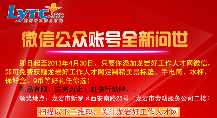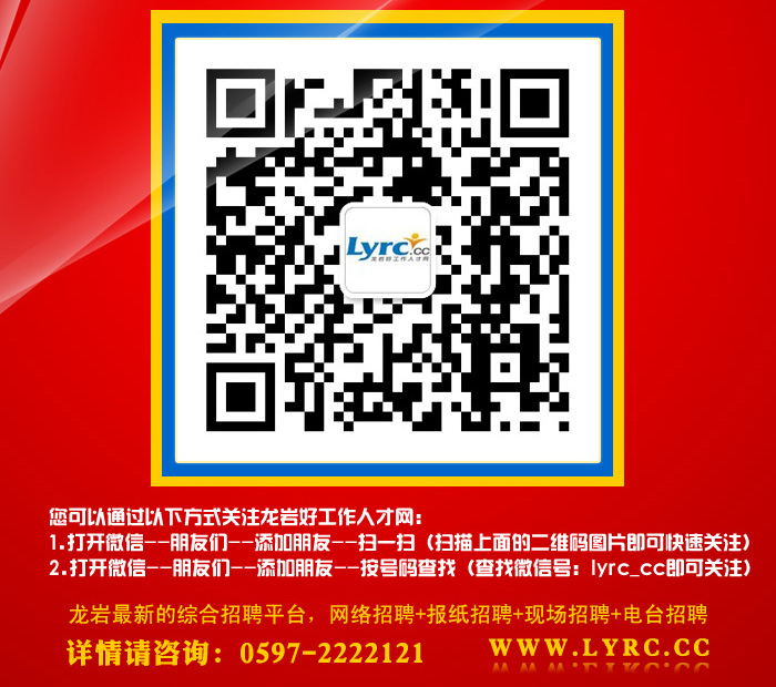 本網(wǎng)站經(jīng)福建省龍巖市人社局批準(zhǔn),為正規(guī)合法人才網(wǎng)站,人力資源服務(wù)許可證:(閩)人服證字〔2019〕第0801000113號(hào)