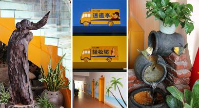 這家公司的整體設(shè)計(jì)以暖色調(diào)為主,內(nèi)飾天花板上繪有藍(lán)天白云,不論戶(hù)外怎么刮風(fēng)下雨,員工和來(lái)賓感覺(jué)都是在晴朗溫暖的天空下,云過(guò)風(fēng)輕;每日流淌于耳畔的輕緩音樂(lè),冬季全天候熱水供應(yīng),調(diào)皮活潑,不失大雅的逍遙亭、輕松坊(洗手間別名),匠心獨(dú)運(yùn)的陶罐、木藝、石藝風(fēng)情,讓人的聽(tīng)覺(jué)、觸覺(jué)、視覺(jué)恣意伸張。