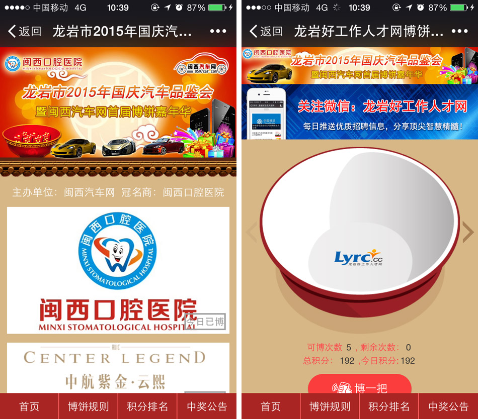 7.參與博餅用戶需關注閩西汽車網官方微信(微信ID:mxqcw-0597car或搜索關注:閩西汽車網);蛲ㄟ^閩西汽車網觸屏版(m.0597car.com)鏈接進入。