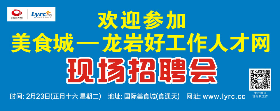 歡迎參加正月十六龍巖國際美食城-龍巖好工作人才網(wǎng)春季大型招聘會