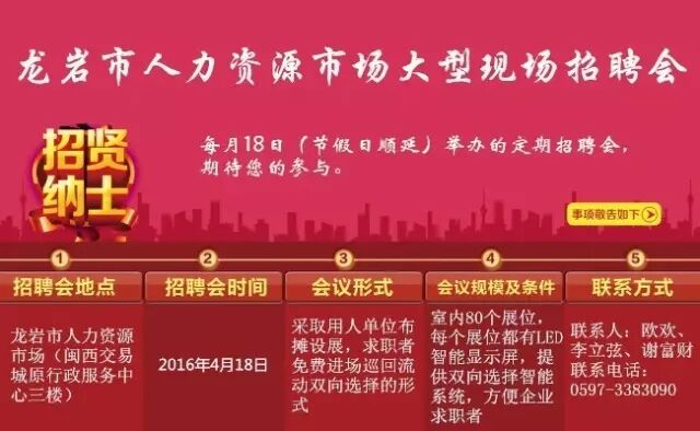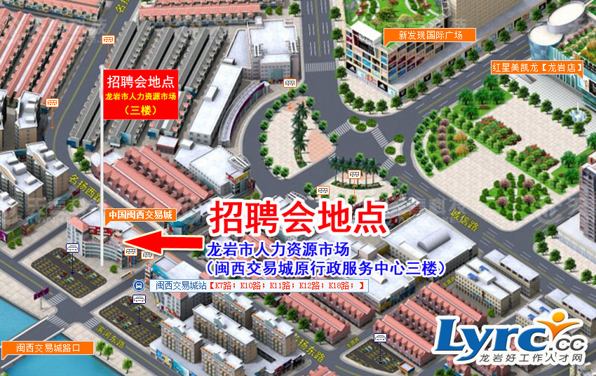 龍巖市人力資源市場(chǎng)(閩西交易城原行政服務(wù)中心三樓)