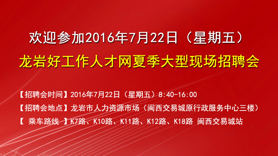 發(fā)布時(shí)間:2016-07-21 17:00:24 | 來(lái)源:龍巖好工作人才網(wǎng) | 已瀏覽人次