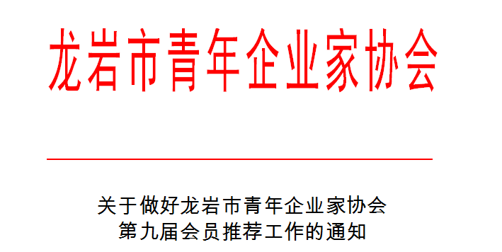 龍巖市青年企業(yè)家協(xié)會(以下簡稱市青企協(xié))第八屆理事會自2010年換屆以來,在市委、市政府及有關(guān)部門的重視和領(lǐng)導(dǎo)下,協(xié)會著眼于服務(wù)青年企業(yè)家成長成才,與時俱進(jìn),開拓創(chuàng)新,為龍巖經(jīng)濟(jì)發(fā)展和社會進(jìn)步做出了積極貢獻(xiàn),培養(yǎng)了一大批在本市乃至全省有一定影響的優(yōu)秀青年企業(yè)家,成為我市較有影響力的社團(tuán)之一。根據(jù)協(xié)會《章程》和龍巖市民政局相關(guān)規(guī)定,擬于近期召開市青企協(xié)第九次會員代表大會,選舉產(chǎn)生市青企協(xié)第九屆理事會,F(xiàn)將有關(guān)事項(xiàng)通知如下: