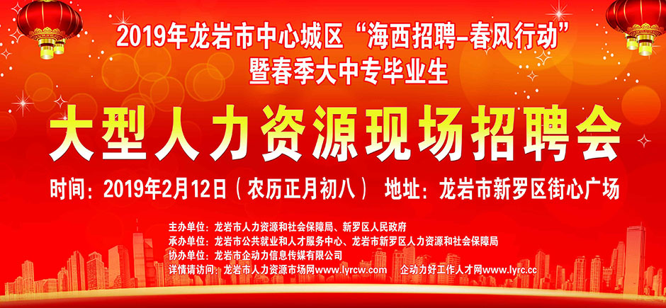 為全面貫徹落實(shí)黨的十九大精神,更好地服務(wù)發(fā)展、服務(wù)人才、服務(wù)民生,穩(wěn)定節(jié)后就業(yè)形勢,保障企業(yè)用工需求,促進(jìn)大中專畢業(yè)生和城鄉(xiāng)各類求職者充分就業(yè),決定舉辦2019年龍巖市中心城區(qū)“海西招聘——春風(fēng)行動”暨春季大中專畢業(yè)生大型公益性人力資源現(xiàn)場招聘會,現(xiàn)將有關(guān)事項(xiàng)通知如下:
