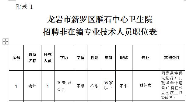 附表1:龍巖市新羅區(qū)雁石中心衛(wèi)生院招聘非在編專業(yè)技術(shù)人員職位表(點(diǎn)擊下載)