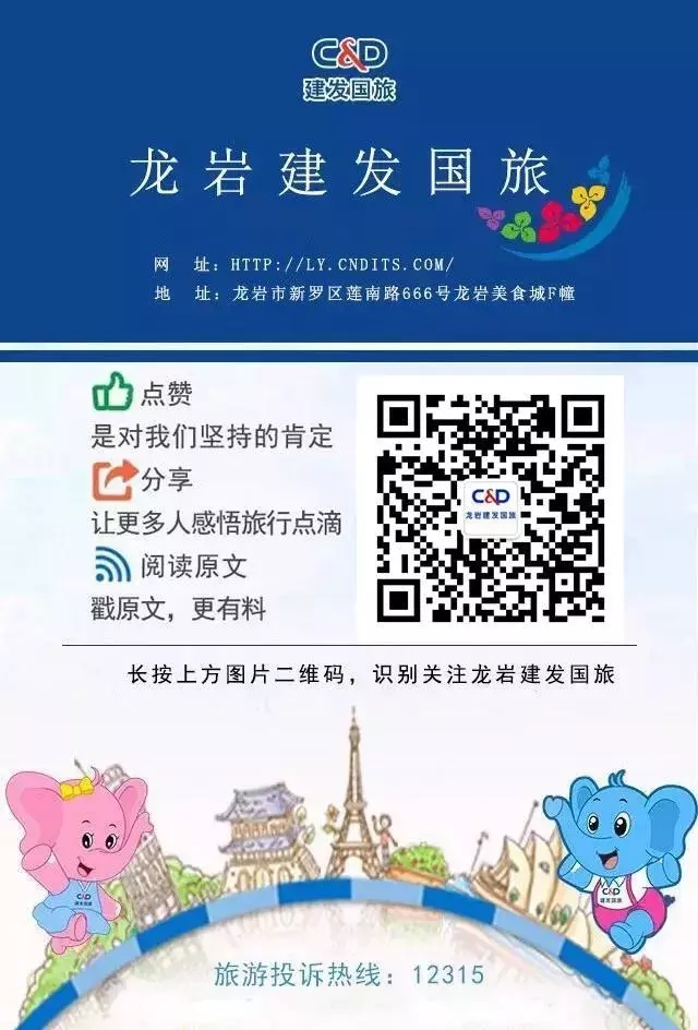 龍巖建發(fā)國(guó)際旅行社有限公司成立于2009年9月,隸屬于福建省旅行社行業(yè)龍頭企業(yè)一廈門(mén)建發(fā)國(guó)際旅行社集團(tuán)有限公司,是福建省服務(wù)質(zhì)量信用等級(jí)5A級(jí)旅行社,經(jīng)國(guó)家旅游局批準(zhǔn)經(jīng)營(yíng)出境、國(guó)內(nèi)、入境旅游、會(huì)議及展覽服務(wù)等業(yè)務(wù),位于龍巖市中心城區(qū)龍巖國(guó)際美食城旅游集散中心。