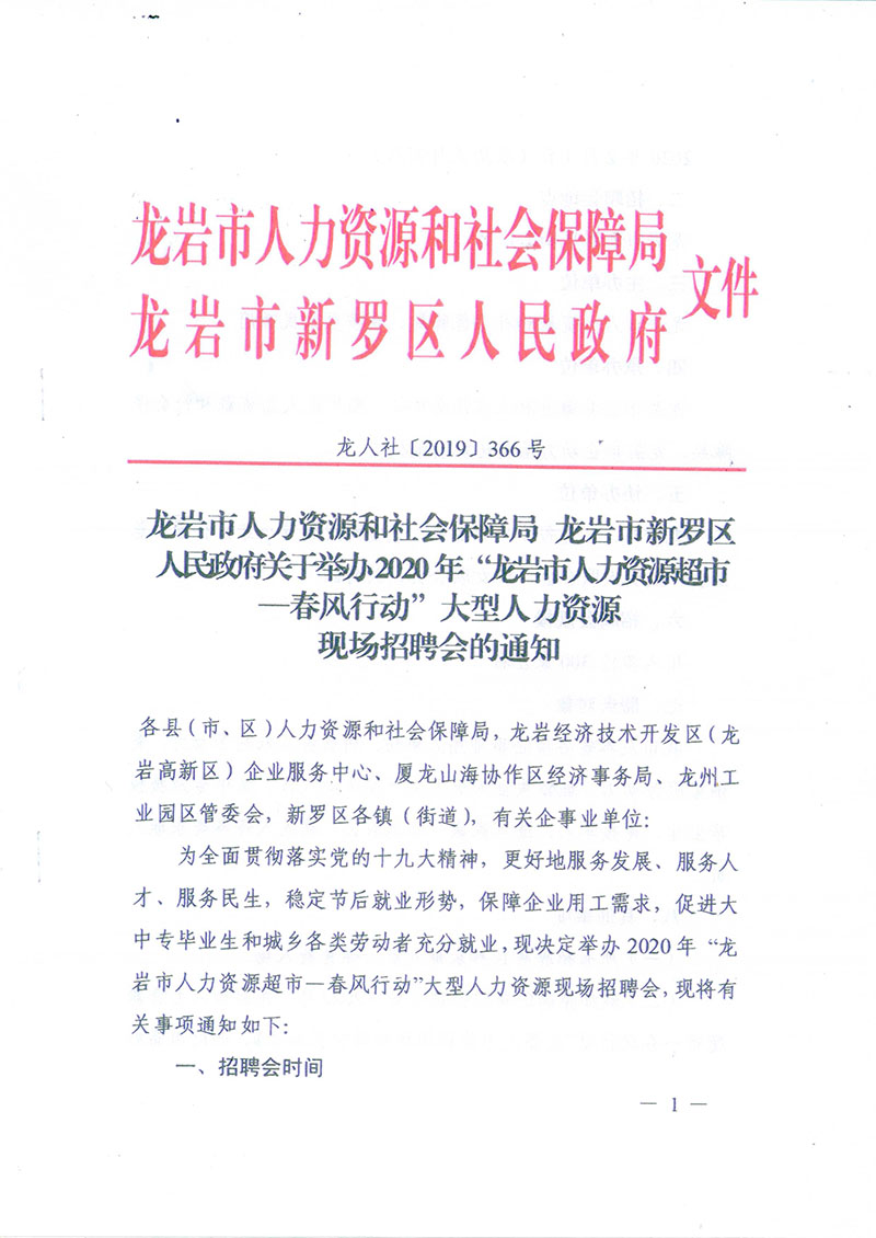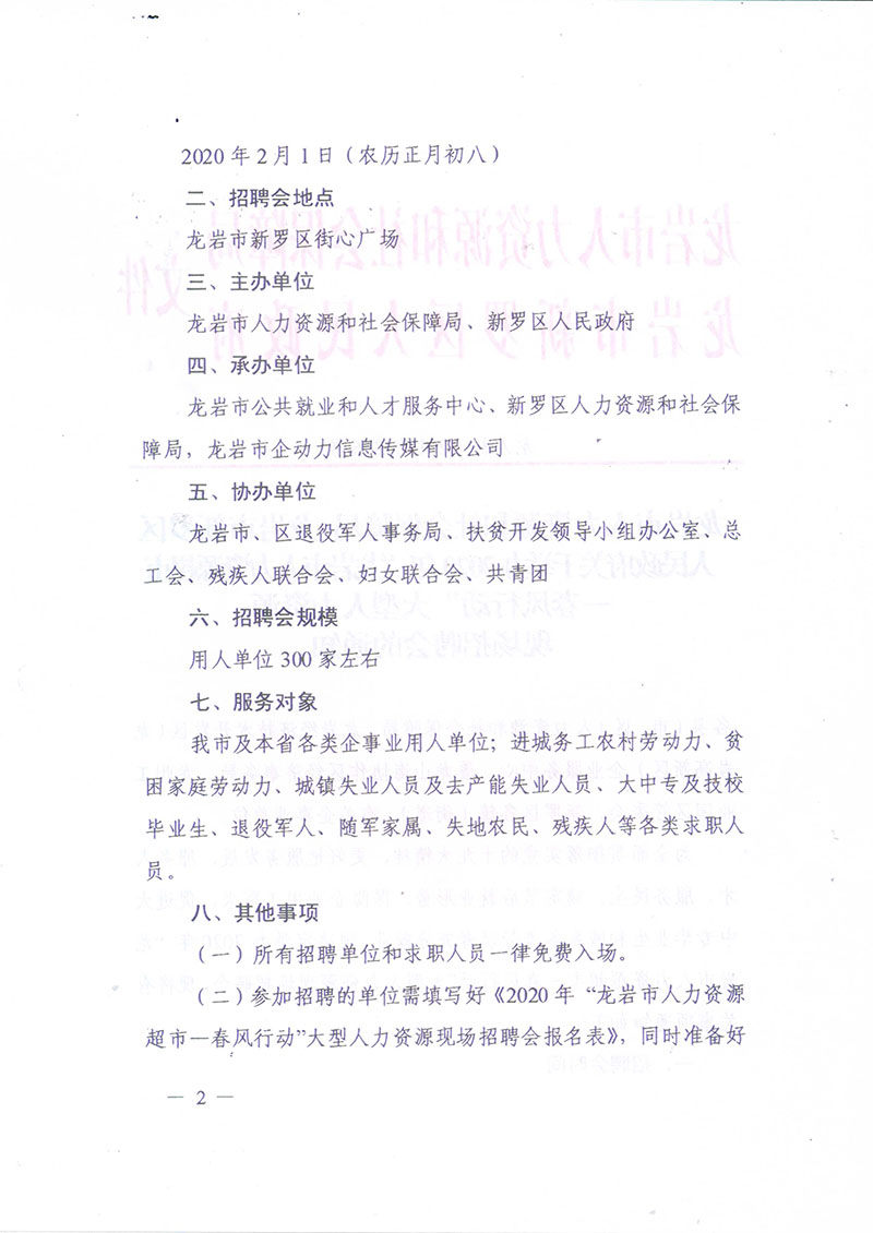 關(guān)于舉辦2020年“龍巖市人力資源超市—春風(fēng)行動”