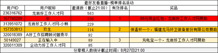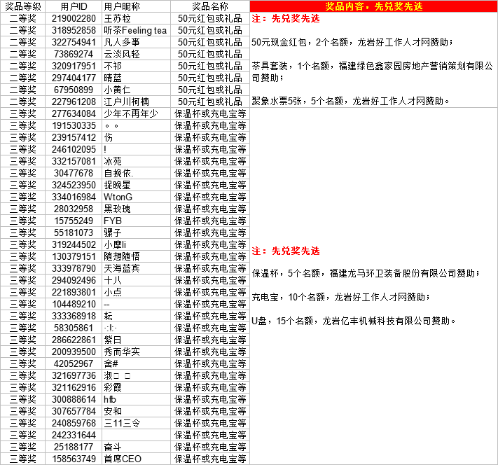 【中獎名單】“職”在龍巖,“就”有未來 網(wǎng)絡(luò)直播帶崗招聘會中獎名單