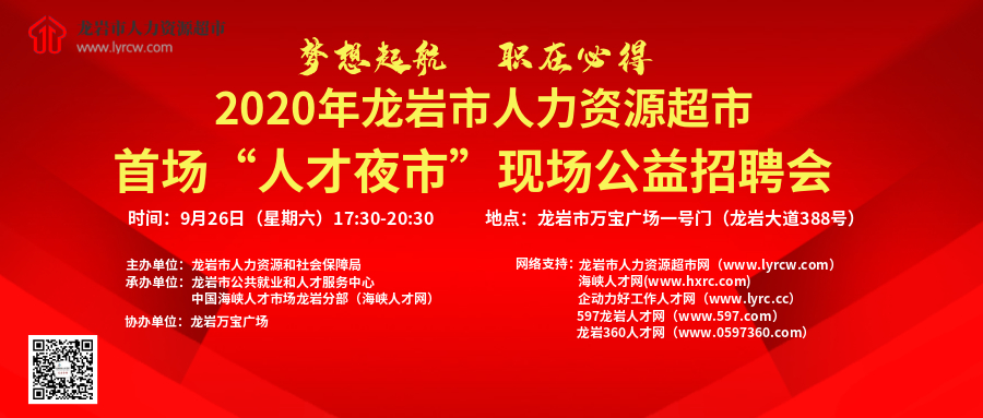 為貫徹落實(shí)市委市政府決策部署,扎實(shí)做好“六穩(wěn)”工作、落實(shí)“六保”任務(wù),堅(jiān)持把穩(wěn)就業(yè)放在首位,多渠道搭建企業(yè)與求職者對(duì)接平臺(tái),努力克服疫情對(duì)企業(yè)帶來(lái)的不利影響,龍巖市人力資源和社會(huì)保障局決定舉辦“夢(mèng)想起航 職在必得——2020年龍巖市人力資源超市首場(chǎng)‘人才夜市’公益現(xiàn)場(chǎng)招聘會(huì)”,現(xiàn)將相關(guān)事宜通知如下: