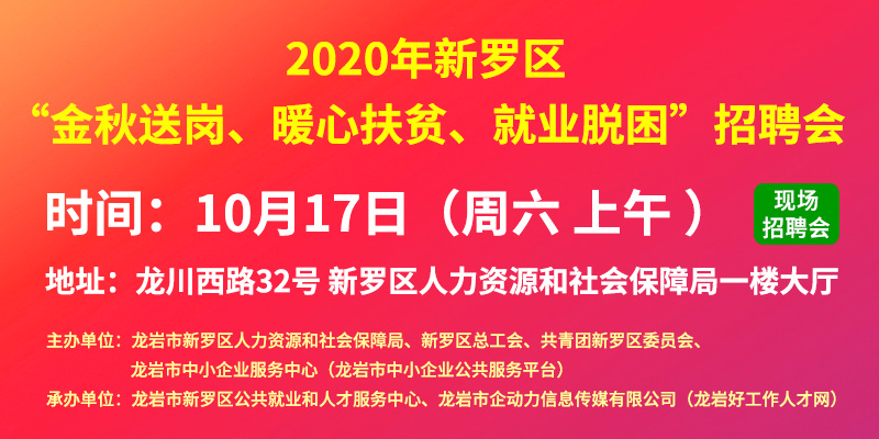 【招聘會(huì)名單】10月17日新羅區(qū)“金秋送崗、暖心扶貧、就業(yè)脫困”招聘會(huì)
