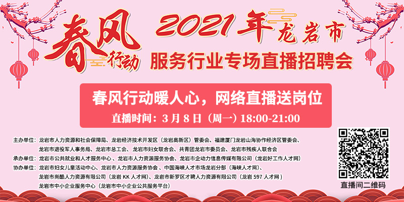 【直播回放】2021年龍巖市“春風行動—海西招聘”服務行業(yè)專場直播招聘會公告