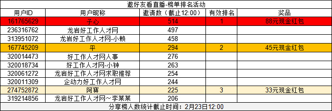 【中獎名單】新羅區(qū)“春風行動—海西招聘”首場網絡直播招聘會中獎名單