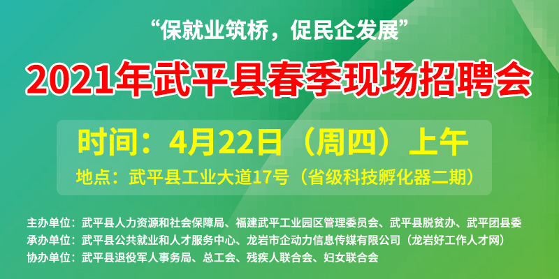 【4月22日武平招聘會】2021年武平縣春季現(xiàn)場招聘會