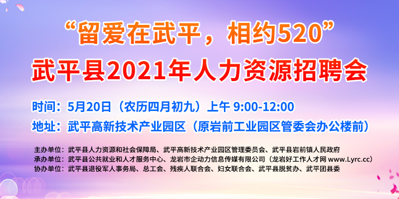 【5月20日武平招聘會】武平縣2021年“留愛在武平,相約520”人力資源招聘會