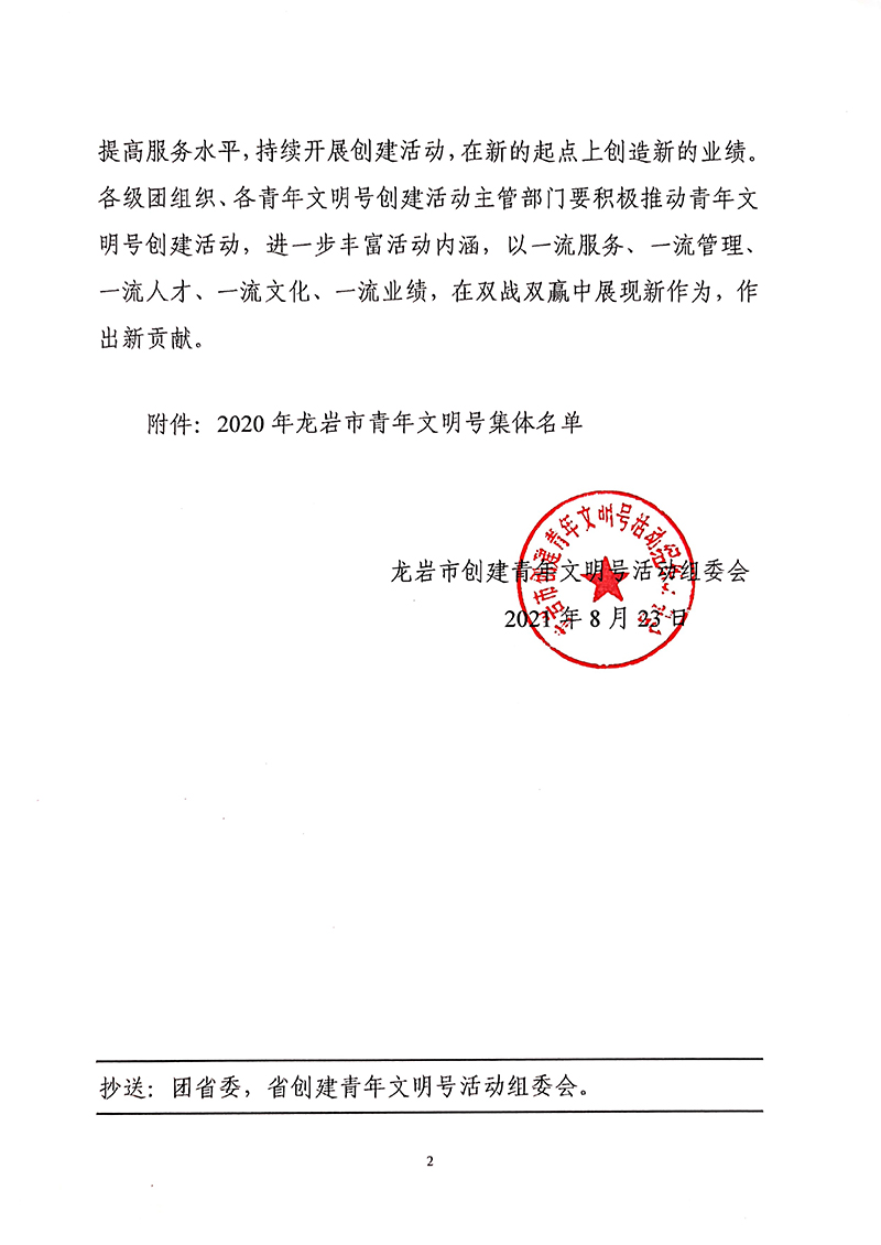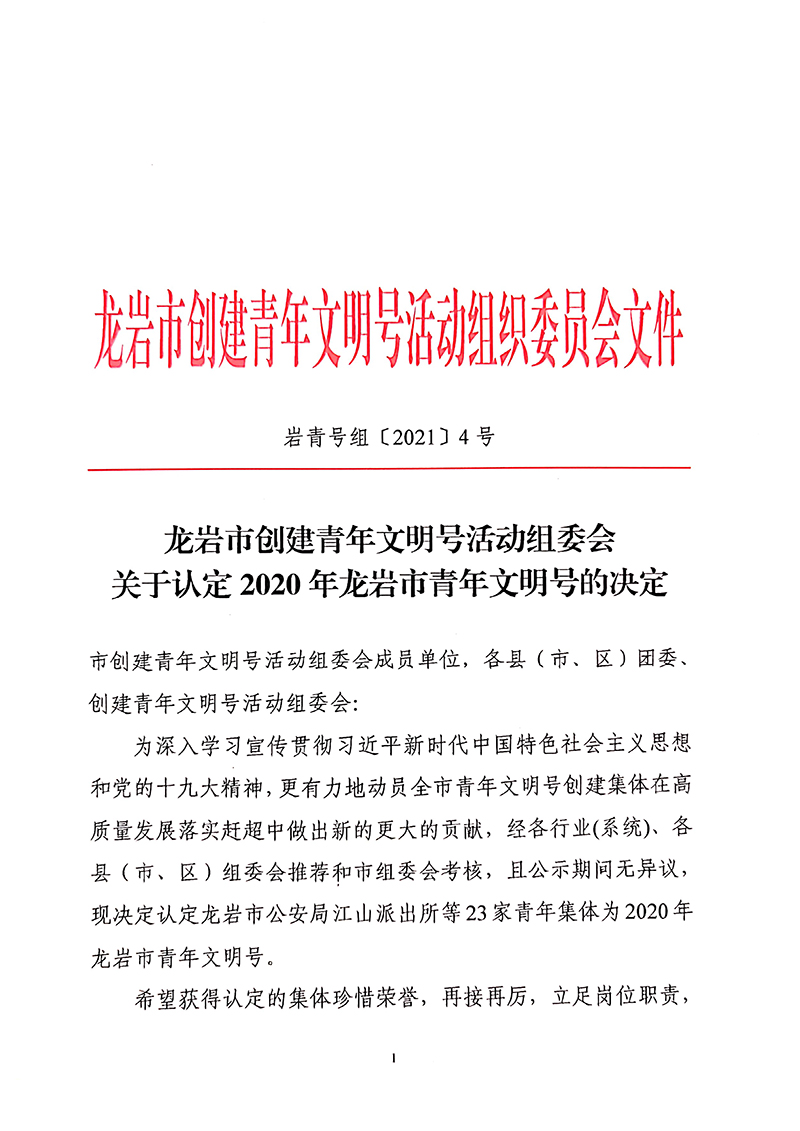 近日,從龍巖市創(chuàng)建青年文明號活動組委會下發(fā)的《關(guān)于認(rèn)定2020年度市級青年文明號的決定》獲悉,龍巖市企動力信息傳媒有限公司(龍巖好工作人才網(wǎng))榮獲2021—2023年度龍巖市級“青年文明號”榮譽(yù)稱號。