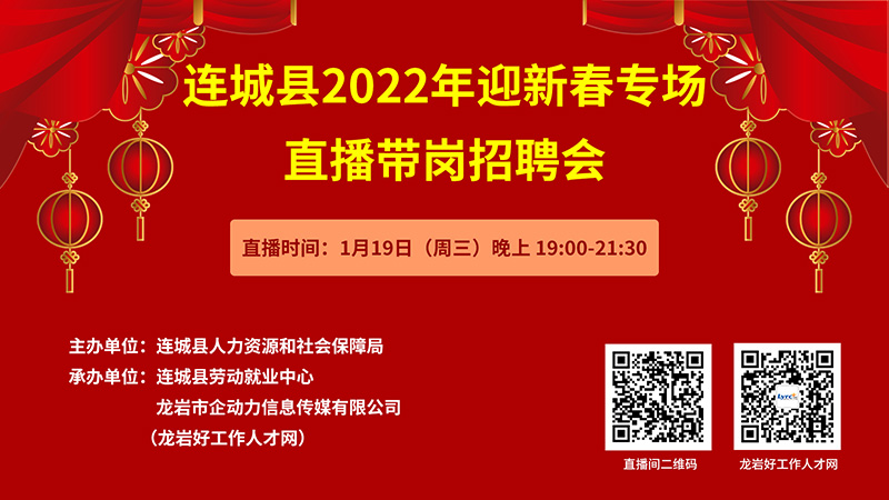 【直播回放】歡迎關(guān)注連城縣2022年迎新春專場直播帶崗招聘會(huì)