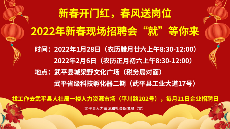 歡迎關(guān)注武平縣新春開門紅,春風送崗位 2022年新春現(xiàn)場招聘會 “就”等你來