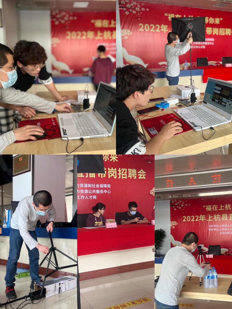 直播帶崗招聘會(huì)現(xiàn)場(chǎng),工作人員積極發(fā)揮黨員先鋒模范作用,緊鑼密鼓的籌備此次直播帶崗招聘會(huì):現(xiàn)場(chǎng)布置、設(shè)備調(diào)試、有序彩排、花絮攝影、企業(yè)簽到接待......致敬每一位幕后工作者。
