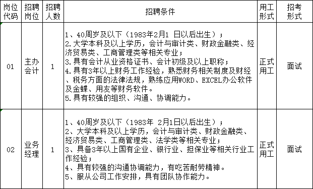報(bào)名地點(diǎn):龍巖市新羅區(qū)西陂街道龍巖大道395號(hào)匯通大廈16樓龍巖市龍津融資擔(dān)保有限公司綜合部, 聯(lián)系人:羅女士 蘇女士 聯(lián)系電話:0597-3309636、0597-3390618。