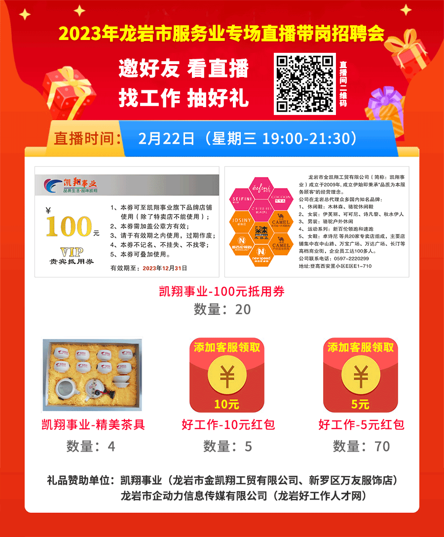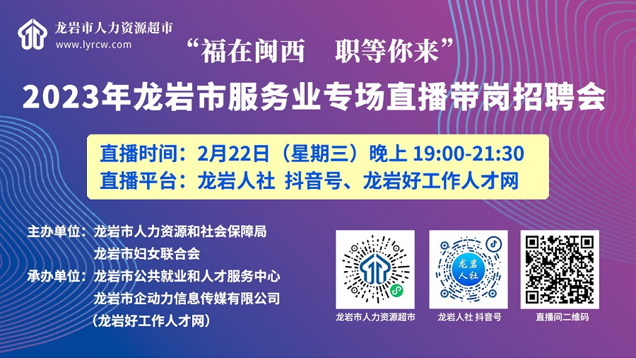 【直播回放】“福在閩西 職等你來”2023年龍巖市服務(wù)業(yè)專場直播帶崗招聘會