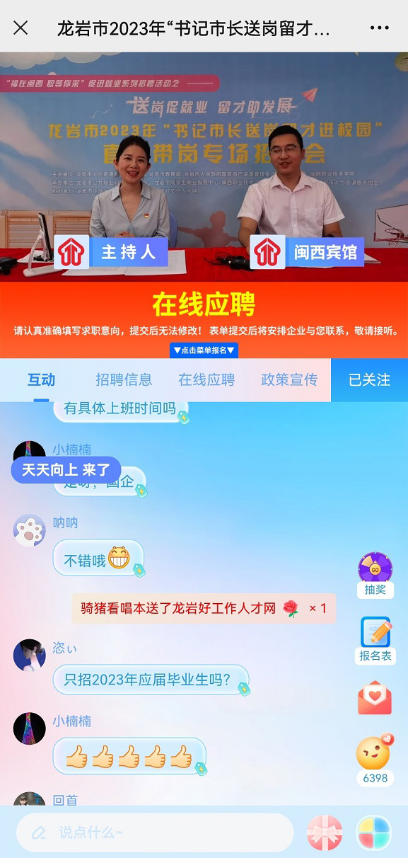 為學(xué)習(xí)貫徹黨的二十大精神,將黨建工作下沉到就業(yè)服務(wù)一線。6月1日,企動(dòng)力支部黨員前往龍巖學(xué)院助力人力資源服務(wù)協(xié)會(huì)成功舉辦2023年“書記市長送崗留才進(jìn)校園”直播帶崗專場招聘會(huì)。