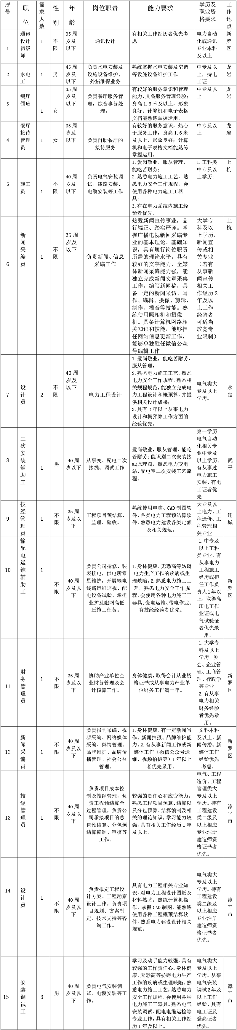 福建省人力資源服務有限公司龍巖分公司公開招聘至(國有企業(yè))工作人員公告