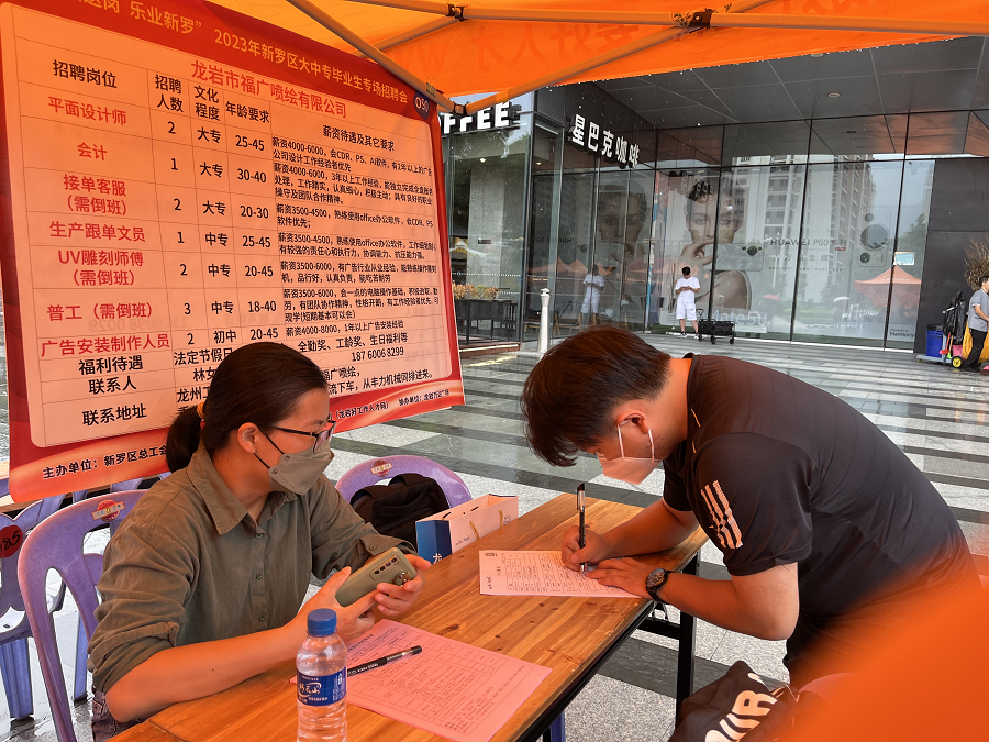 “就業(yè)熱”隨著炎炎夏日而到來。6月10日上午,由新羅區(qū)總工會主辦的“工會送崗 樂業(yè)新羅”新羅區(qū)大中專畢業(yè)生專場現(xiàn)場招聘會在龍巖萬達廣場1號門廣場順利舉行。
