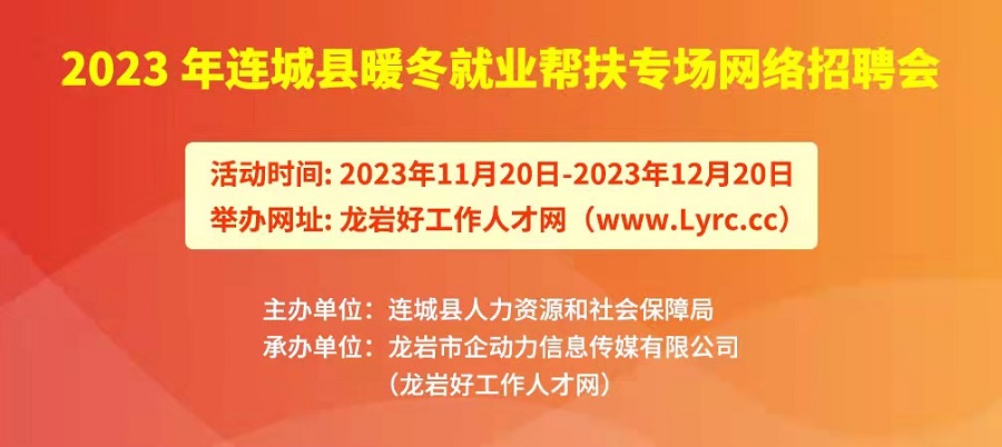 2023年連城縣暖冬就業(yè)幫扶專場網(wǎng)絡招聘會