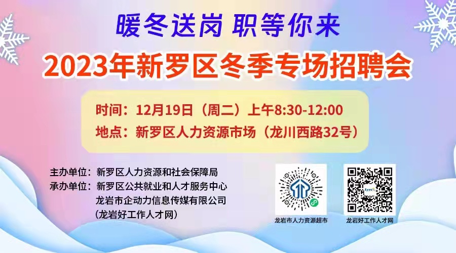 【12月19日】“暖冬送崗 職等你來” 2023年新羅區(qū)冬季專場招聘會