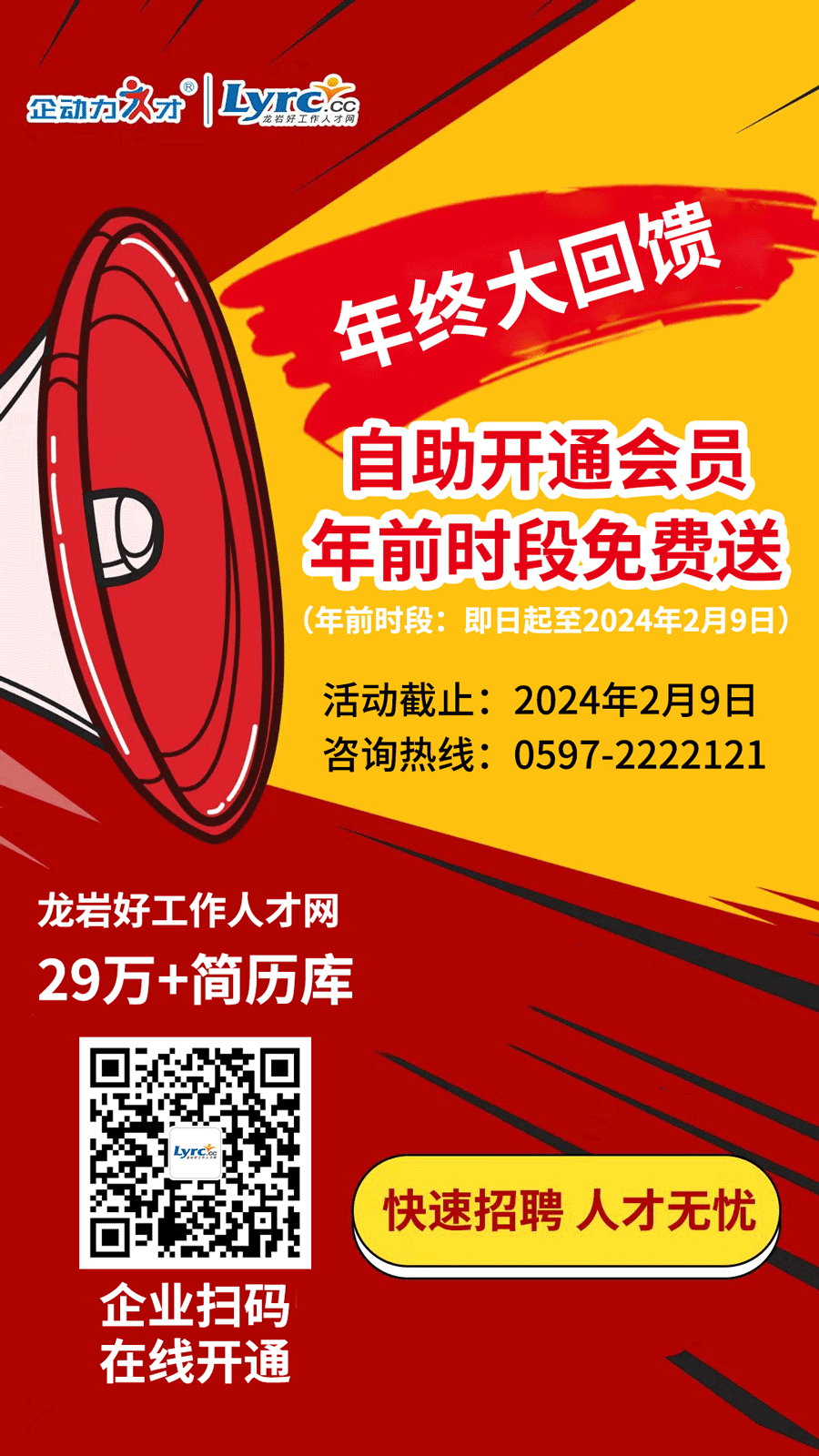 【龍巖好工作人才網(wǎng)-年終大回饋】新年新產(chǎn)品,福利送不停!