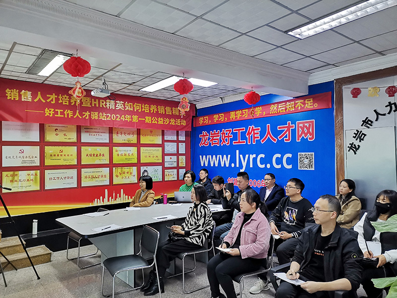 1月7日下午,好工作人才驛站2024年第1期HR公益沙龍-《如何提升銷售團(tuán)隊(duì)穩(wěn)定性》在龍巖市好工作人才網(wǎng)二樓大廳成功舉辦,好工作人才驛站特邀實(shí)戰(zhàn)營銷專家、福建省創(chuàng)業(yè)導(dǎo)師、福建青創(chuàng)認(rèn)證導(dǎo)師戴肄華老師做現(xiàn)場(chǎng)分享。
