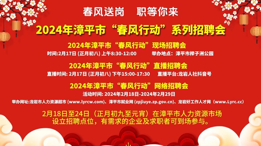 【正月初八】2024年漳平市“春風行動”系列招聘會